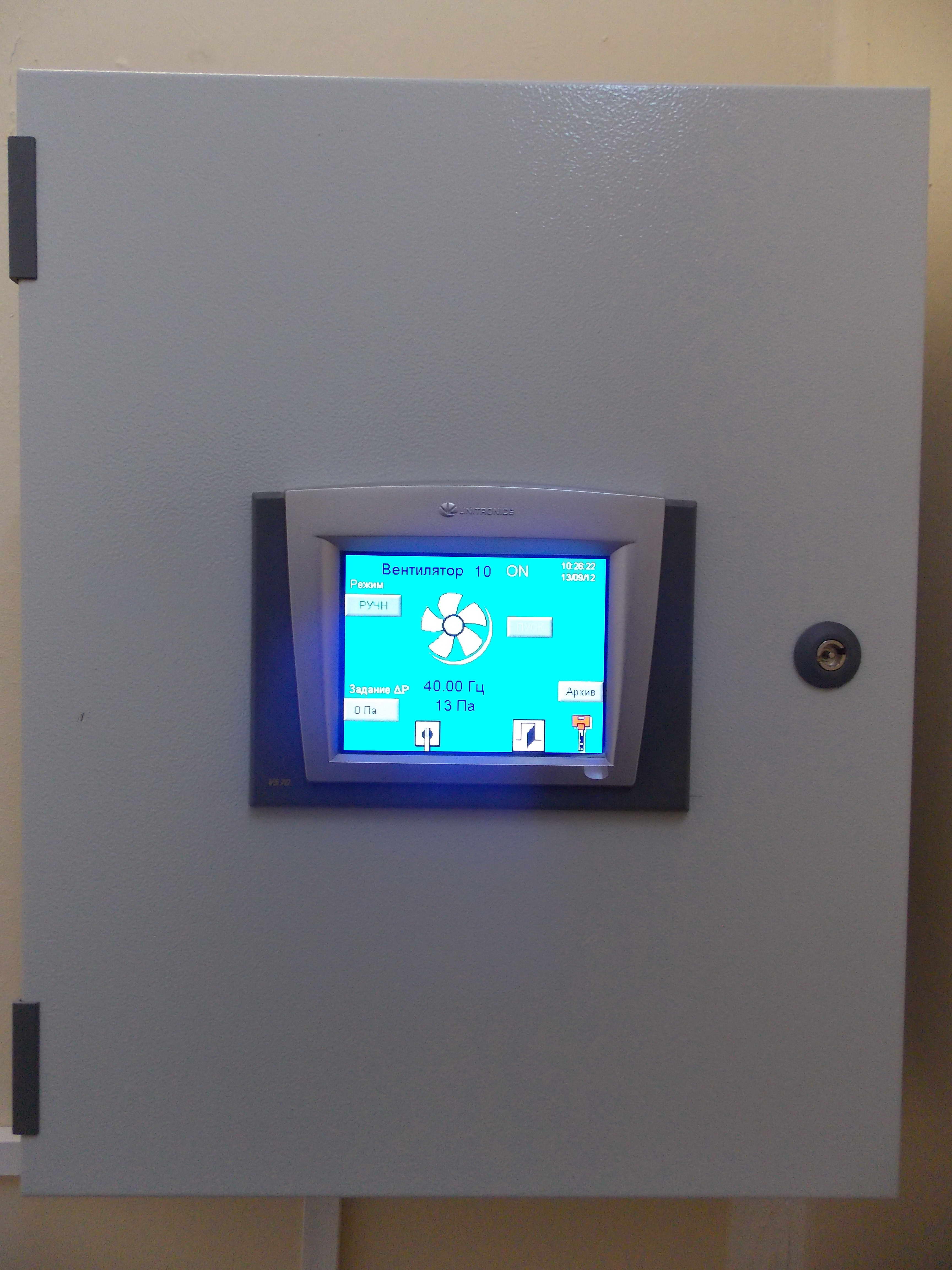 Пульт управления предназначен для удаленного управления станцией и устанавливается в обслуживаемом помещении (таком как комната консьержа или пультовая). При помощи ПУ осуществляется настройка графиков работы всей системы для автоматического поддержания разряжения в вентиляционном канале, а так же при необходимости ручное управление работой вентиляционных агрегатов. Так же он служит для отображения текущей информации и сбора архивных данных.