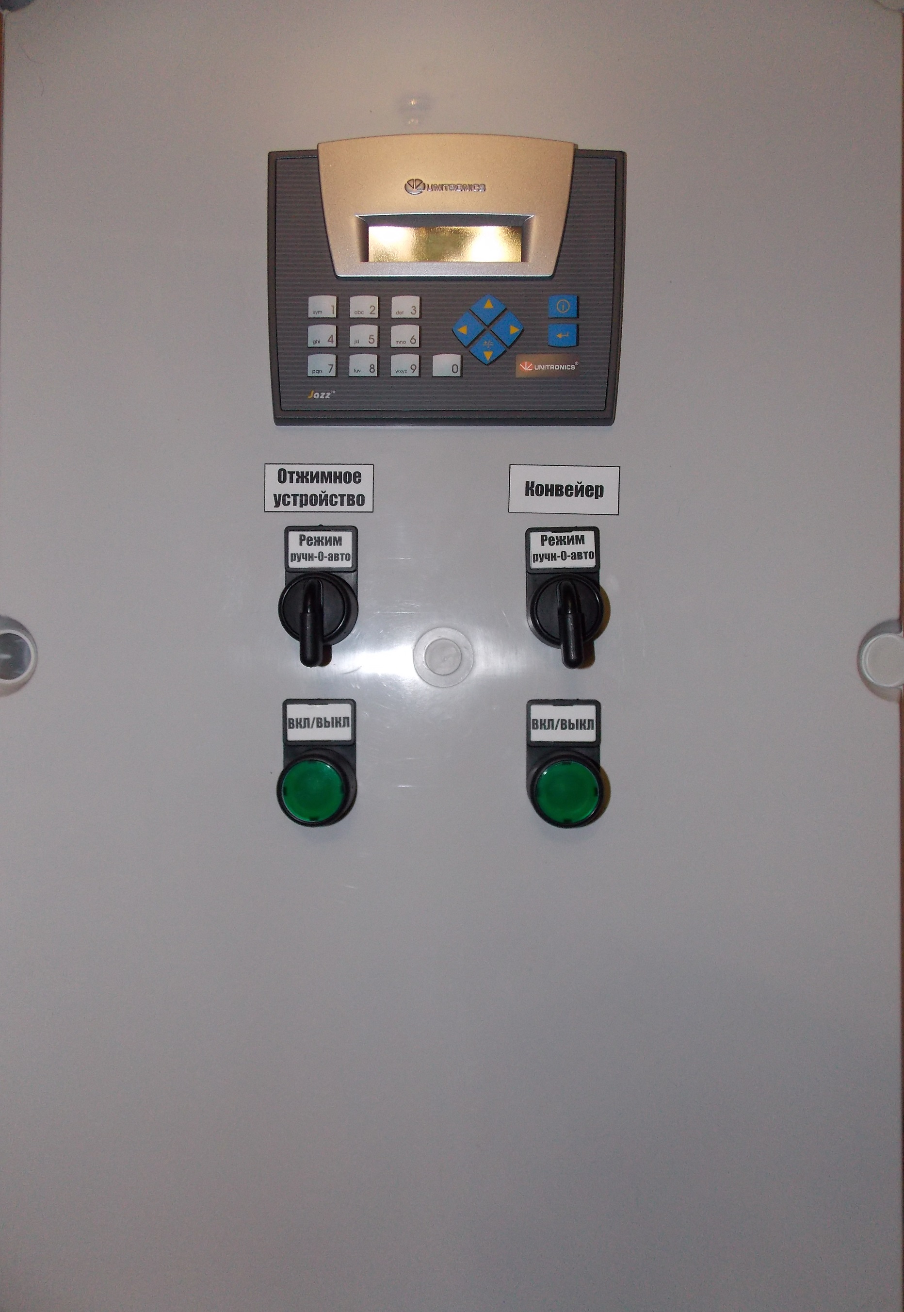 - Щит автоматики и управления отжимным устройством (прессом): управление - по сигналу от первичного устройства (настраиваемый таймер), с возможность промывки*