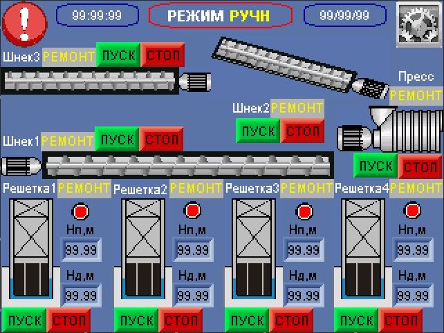 Для управления системой механической очистки предусмотрены три режима: ручной, автоматический по уровню и автоматический по графику.