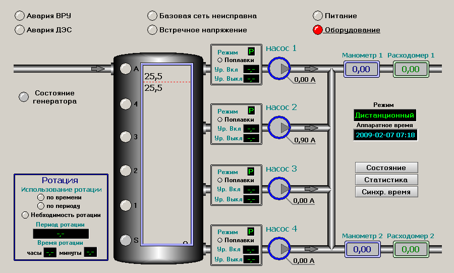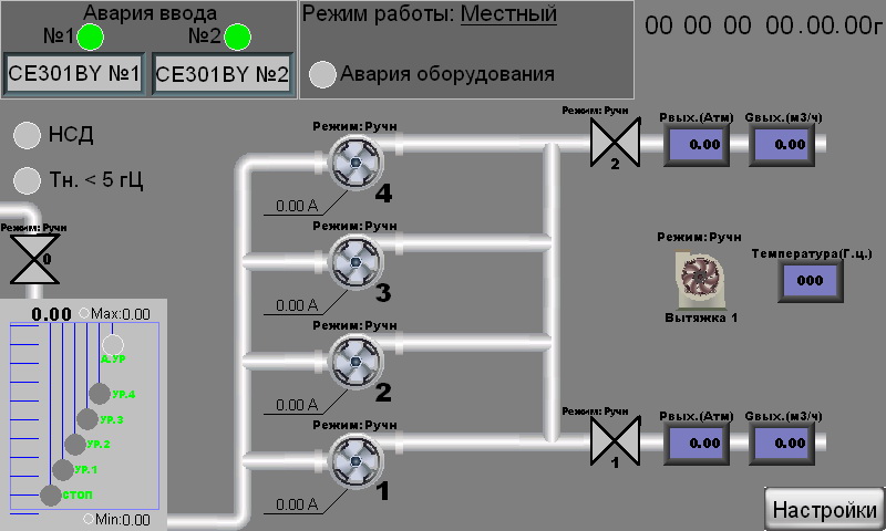 представляет собой сложную взаимосвязь всех электрических щитов, датчиков и контроллерного оборудования с применением как простых (работа на перекачку уровня), так и сложных с применением частотных приводов для регулирования и выравнивания стоков поступающих на очистные сооружения.